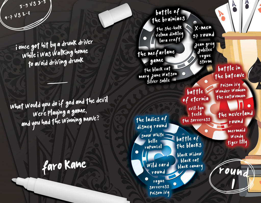 This 24-page full-color edition showcases the Superhero Strip Poker Championship Round 2 cover featuring Felicia, Rogue, and Selina—chosen by your votes. It compiles our best superhero poker artwork from over the years, capturing everything from initial sketches to finished pieces. Faro's Lounge invites you to escape daily stress with this unique tournament collection, culminating in a special pinup of the champion showcased in the back. The winner stars in an exclusive Slave Leia Steel Bikini-inspired photo shoot. Cover and poster art by Renato Milo highlight the thrilling championship poker round with Felicia Hardy, Rogue, and Selina Kyle.