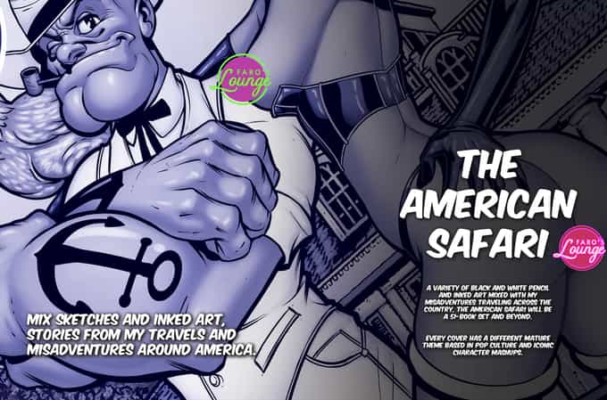 This 24-page volume follows the style of Budd Root’s Sexy Sketchbooks, offering black-and-white pinup and sexy sketches from top-selling commissions. It combines humor, fan fiction, and erotic stories crafted by Faro Kane, making it one installment in the 50-book series titled The American Safari. This edition, known as the Virginia Edition, features a distinctive Cereal Killer Ivy Vegan cover.