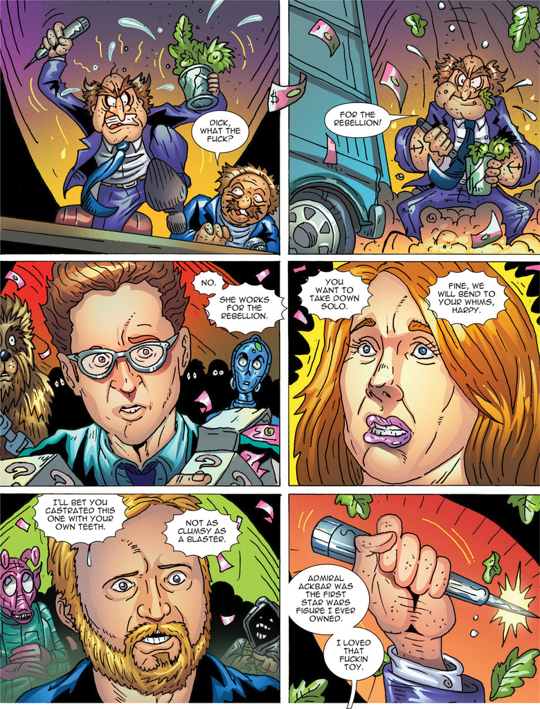 Celebrate the fusion of Cheers and Mars in the launch of a bold new series from Faro's Lounge. Explore life after death through Zeldara, the tri-breasted daughter of Venus, Goddess of Love, and owner of ZELDARA's DEMON DEPOT—a realm where souls receive their afterlife roles to attain redemption. This 24-page full-color issue features a special guest appearance by Star Wars CEO Kathleen Fuckin Kennedy and includes a striking Topless Joyride Mature Cover created by Faro's Lounge South American Hub artist HIQUE.